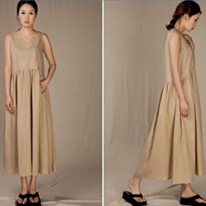 Angel&Lily 3 Colors Handmade Linen Maxi SummerBeach Dress plus1x-10x(SZ16-52)