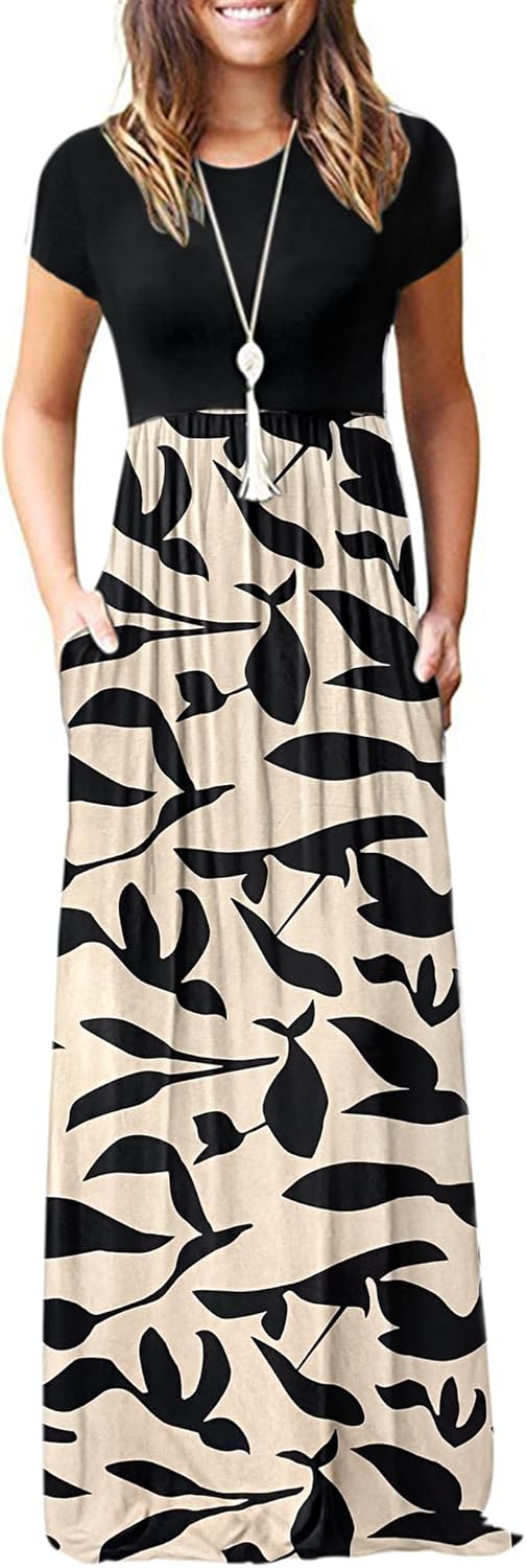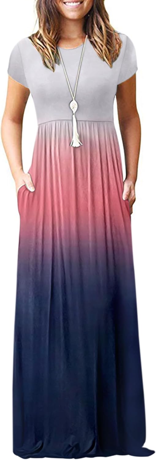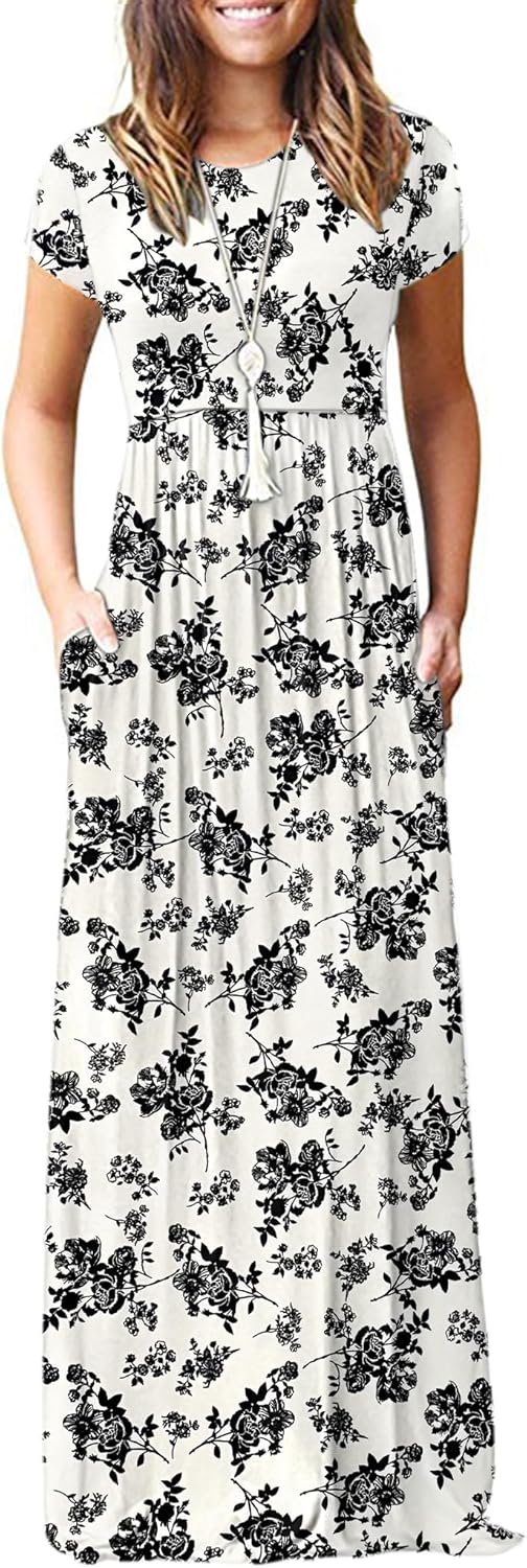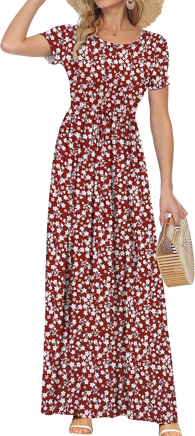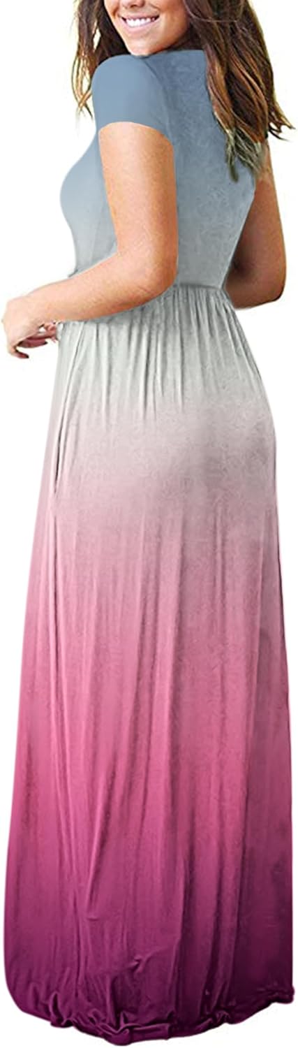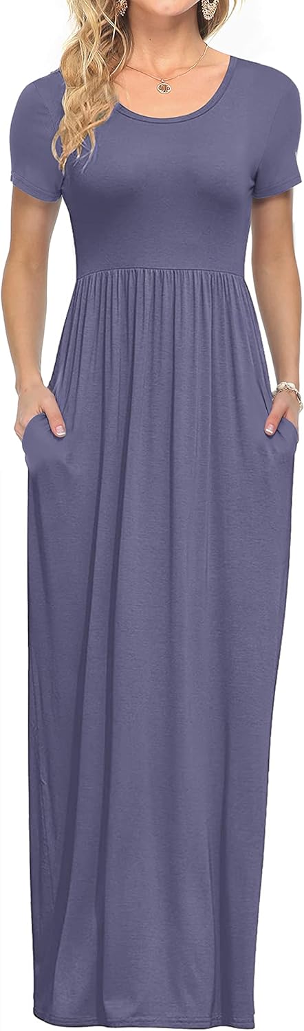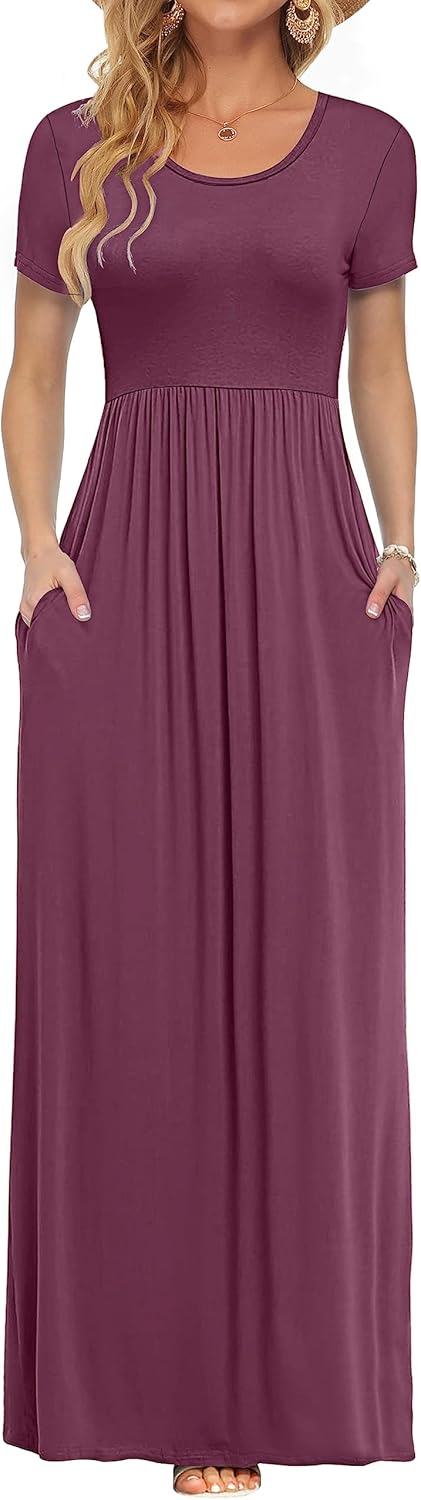 AUSELILY Women’s Short Sleeve Loose Plain Casual Long Maxi Dresses for Women 2025