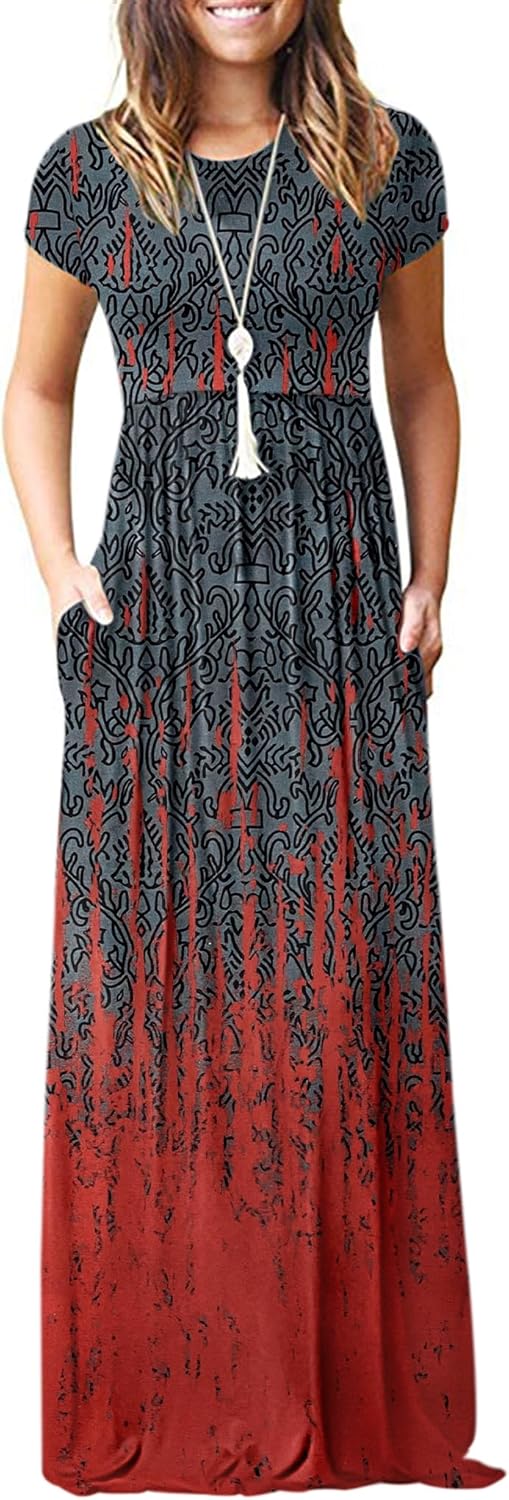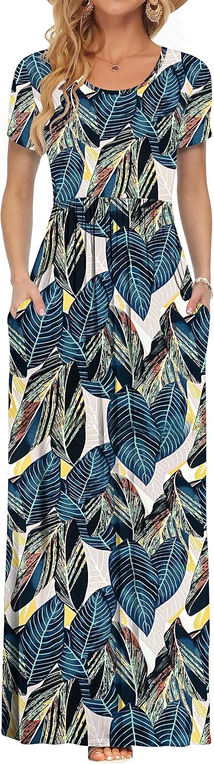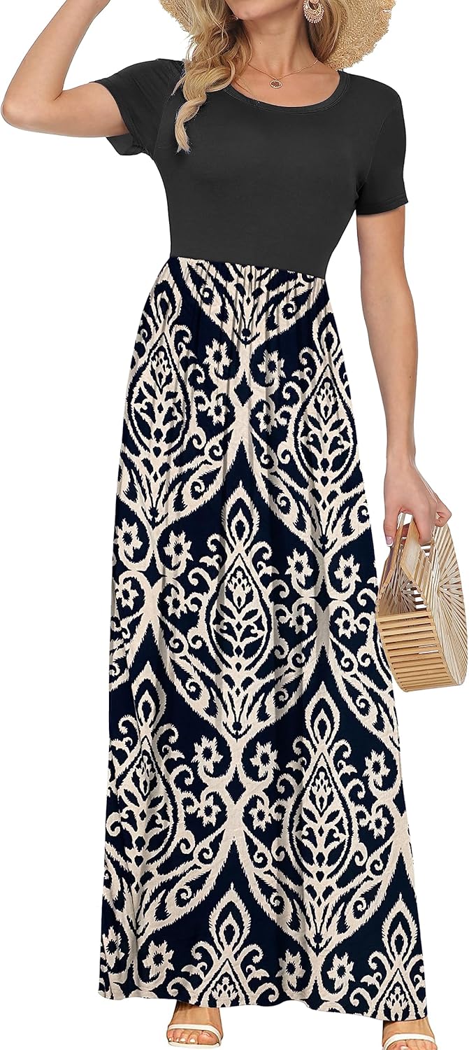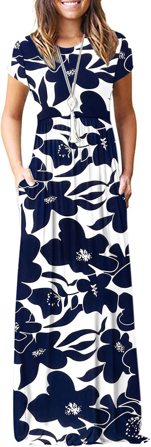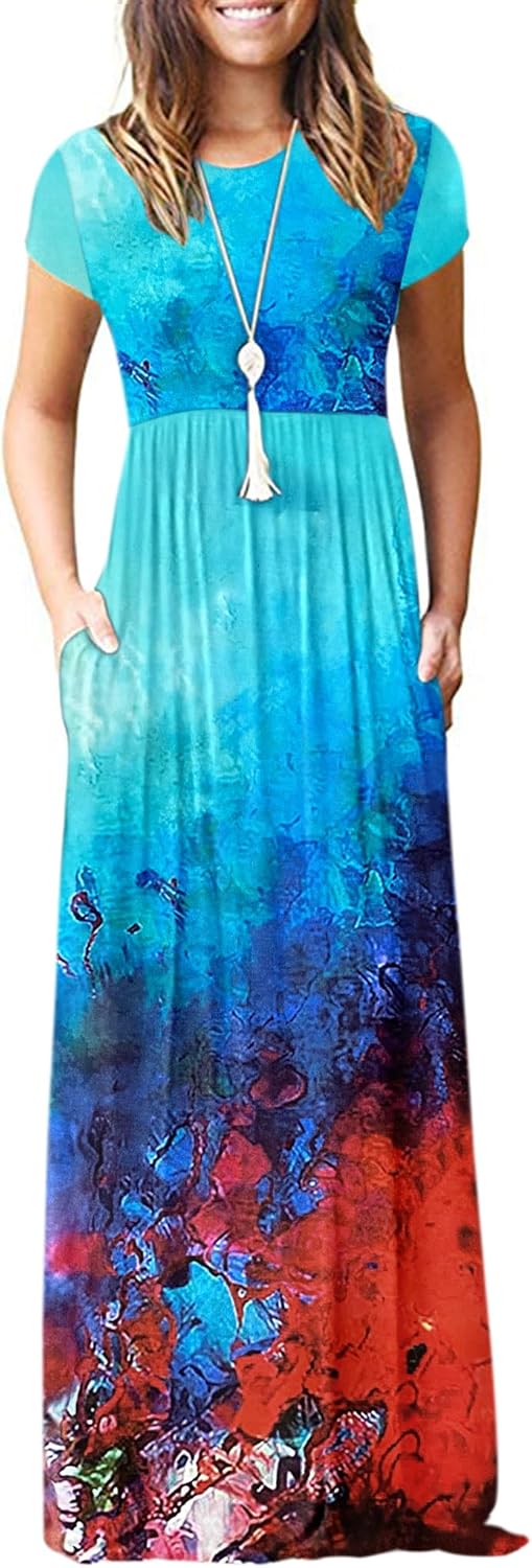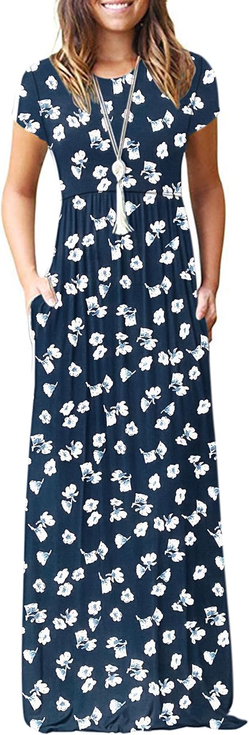 AUSELILY Women’s Short Sleeve Loose Plain Casual Long Maxi Dresses for Women 2025