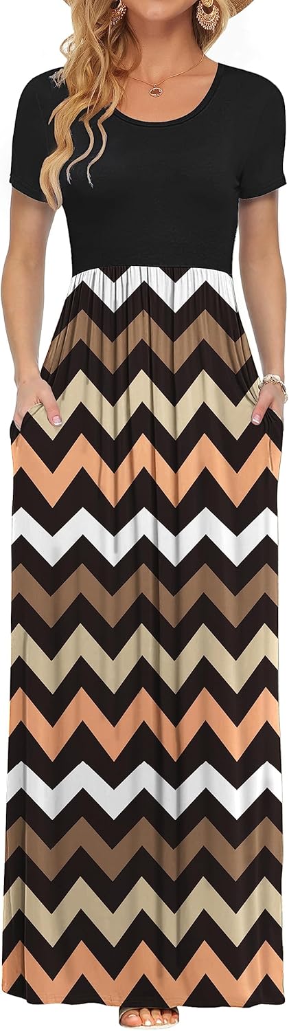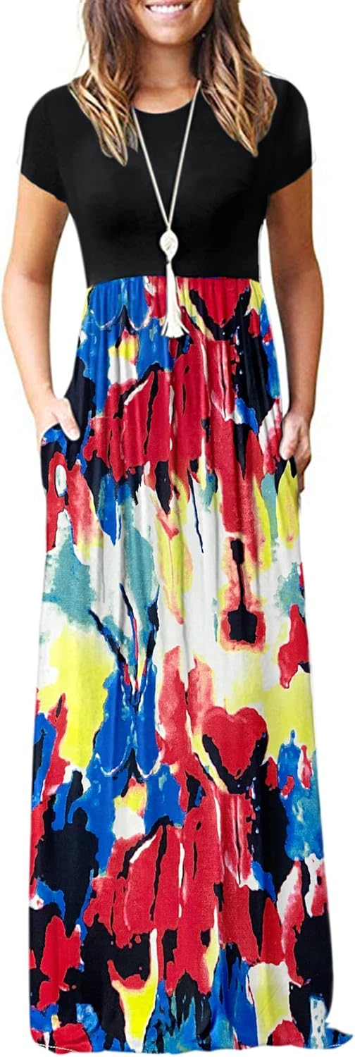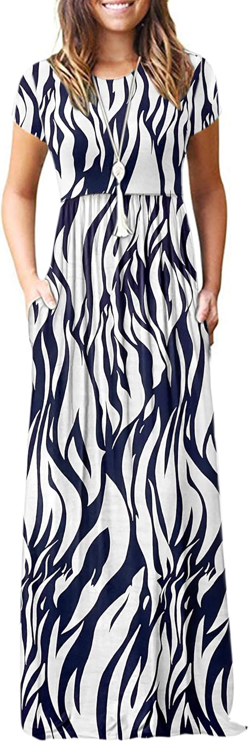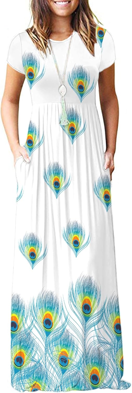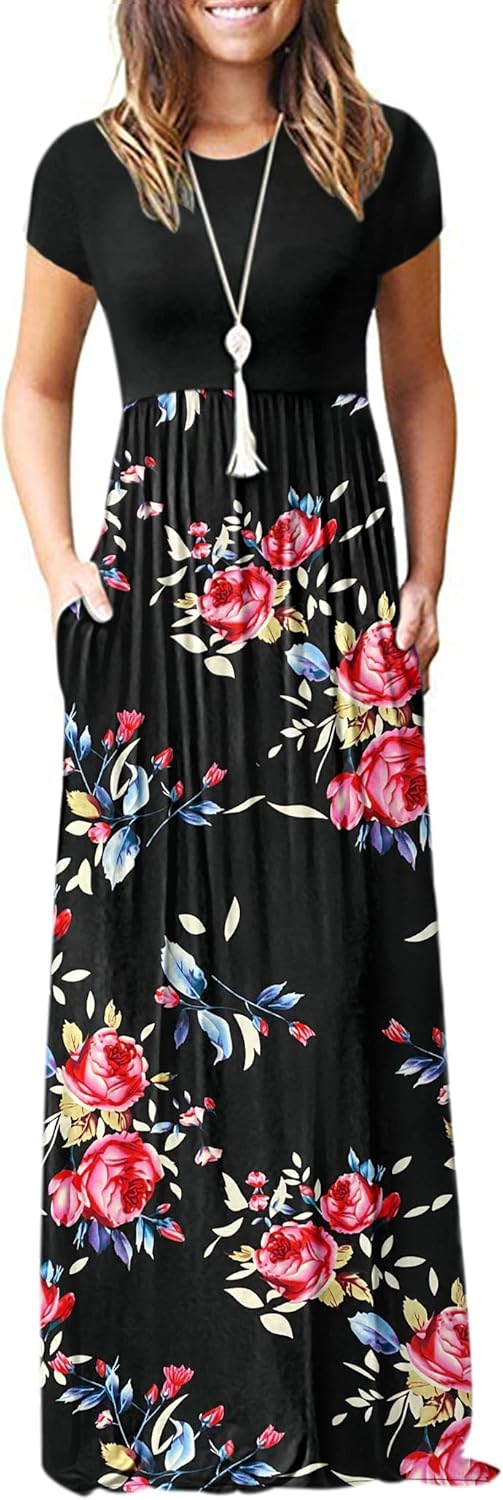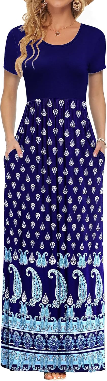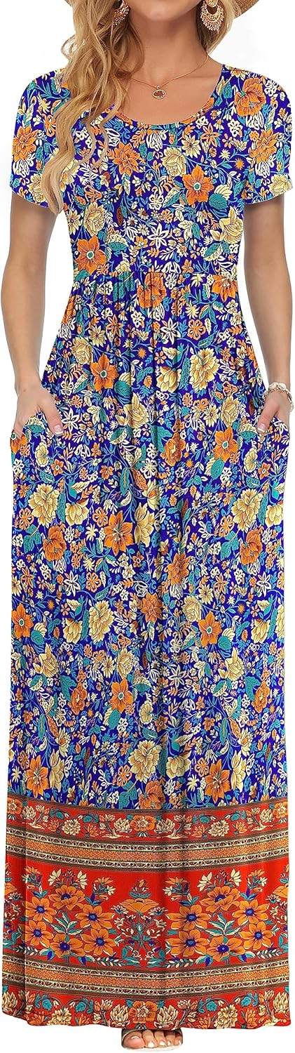 AUSELILY Women’s Short Sleeve Loose Plain Casual Long Maxi Dresses for Women 2025