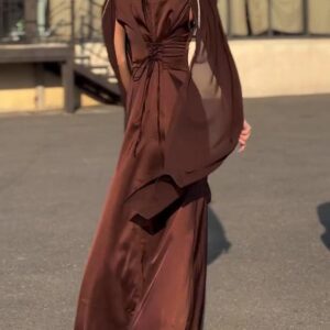 Elevate your wardrobe with this stunning Round Neck Belted Maxi Dress, perfect for both daily wear and wedding occasions. This elegant full-length dress features a timeless plain design crafted from polyester fabric, offering a regular fit that flatters various body types. Available in sophisticated brown and black color options, the dress is thoughtfully designed with a round neckline and comes with a coordinating belt to accentuate your silhouette. The maxi length adds a touch of grace to your appearance, while the inelastic material helps maintain the dress’s structured shape throughout the day. The versatile design transitions seamlessly from casual daytime events to formal occasions, making it a valuable addition to your wardrobe. Available in sizes XS through XL, this dress combines style with functionality, ensuring you look polished and put-together for any occasion.
