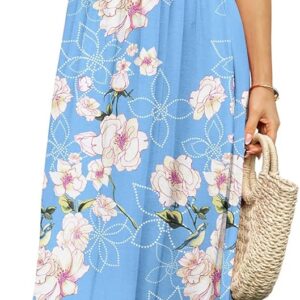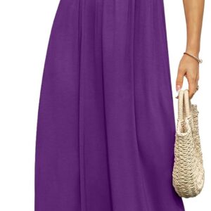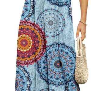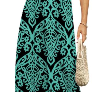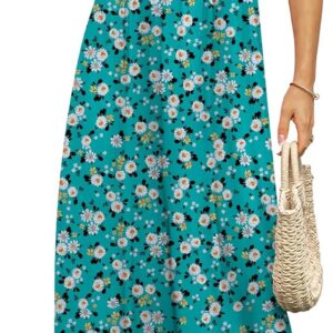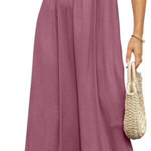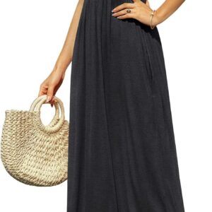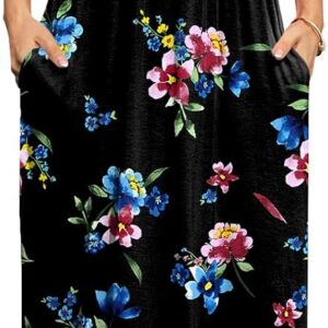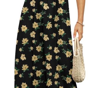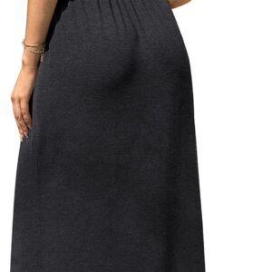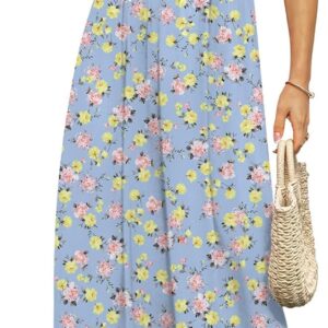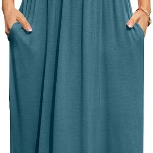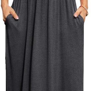 DB MOON 2022 Women Summer Maxi Dresses Casual Short Sleeve Loose Dress with Pockets