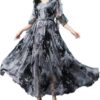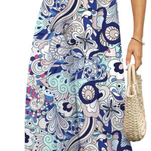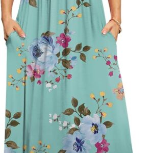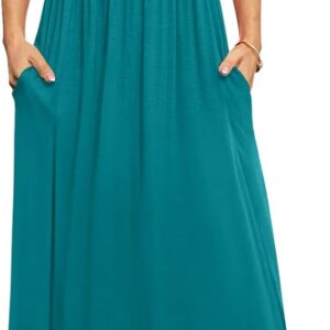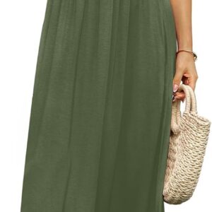 DB MOON Womens 2025 Summer Maxi Dresses Casual Short Sleeve Empire Waist Spring Long Dress with Pockets