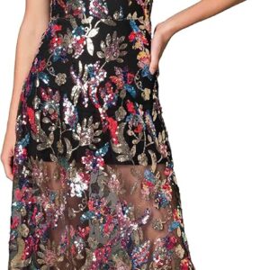 SWEETHEART BODICE FIT AND FLARE FLORAL EMBROIDERY MAXI DRESS.