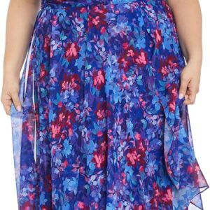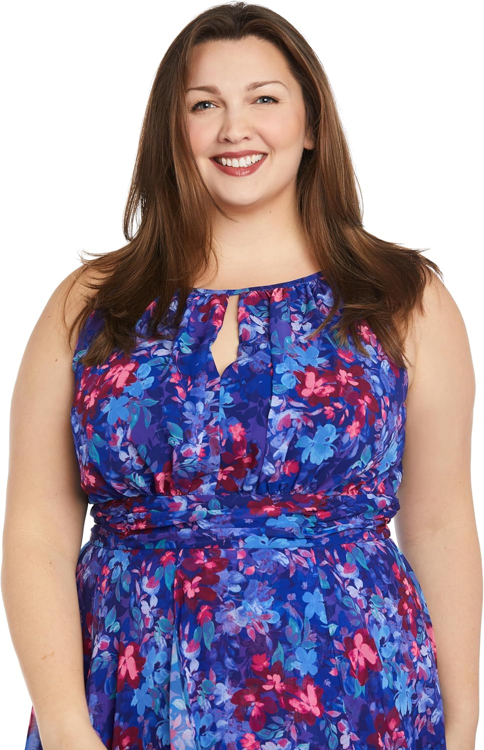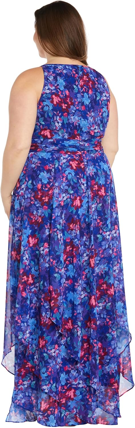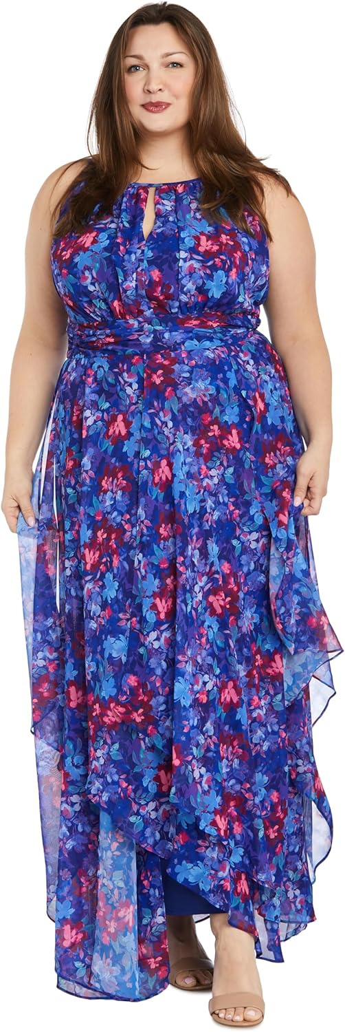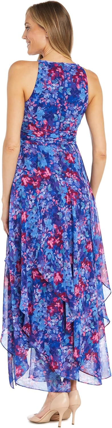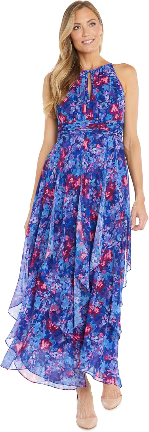 Floral Chiffon Halter Maxi Dress W\/Keyhole Detail & Ruffle Cascade Skirt
