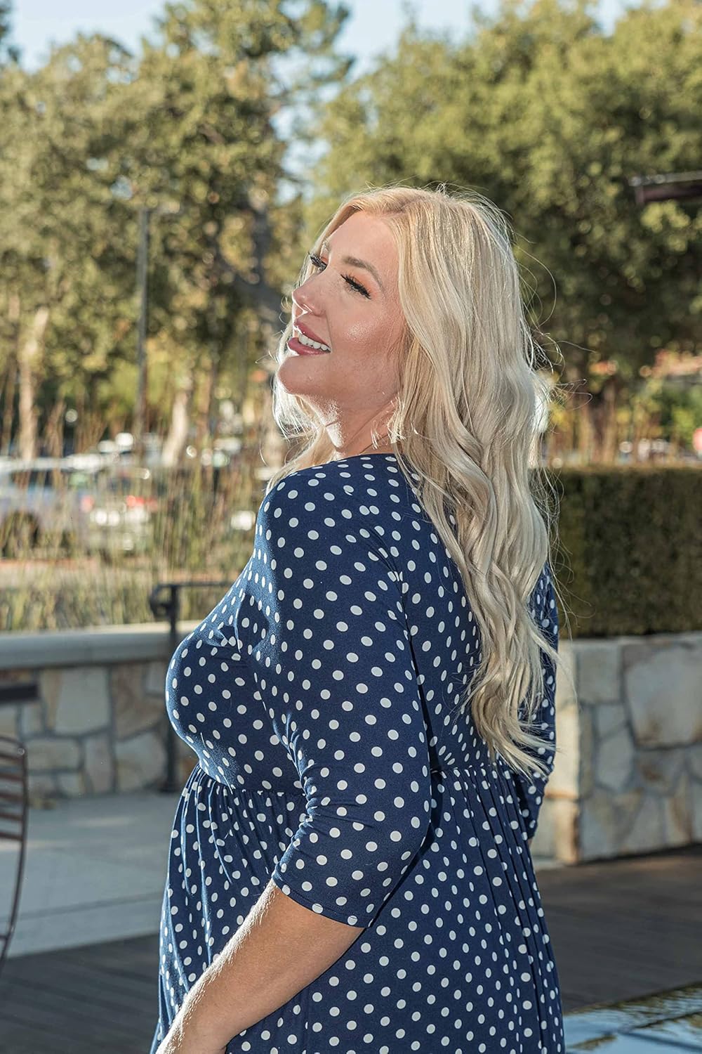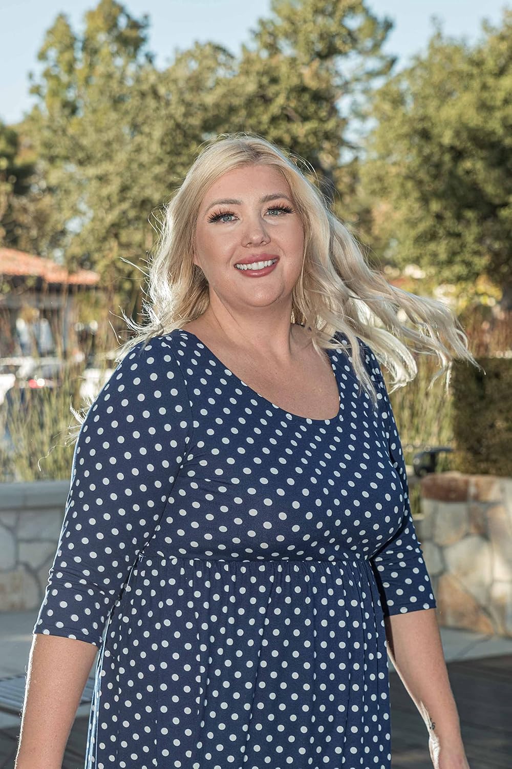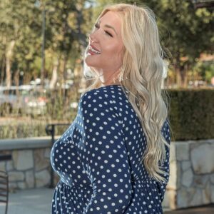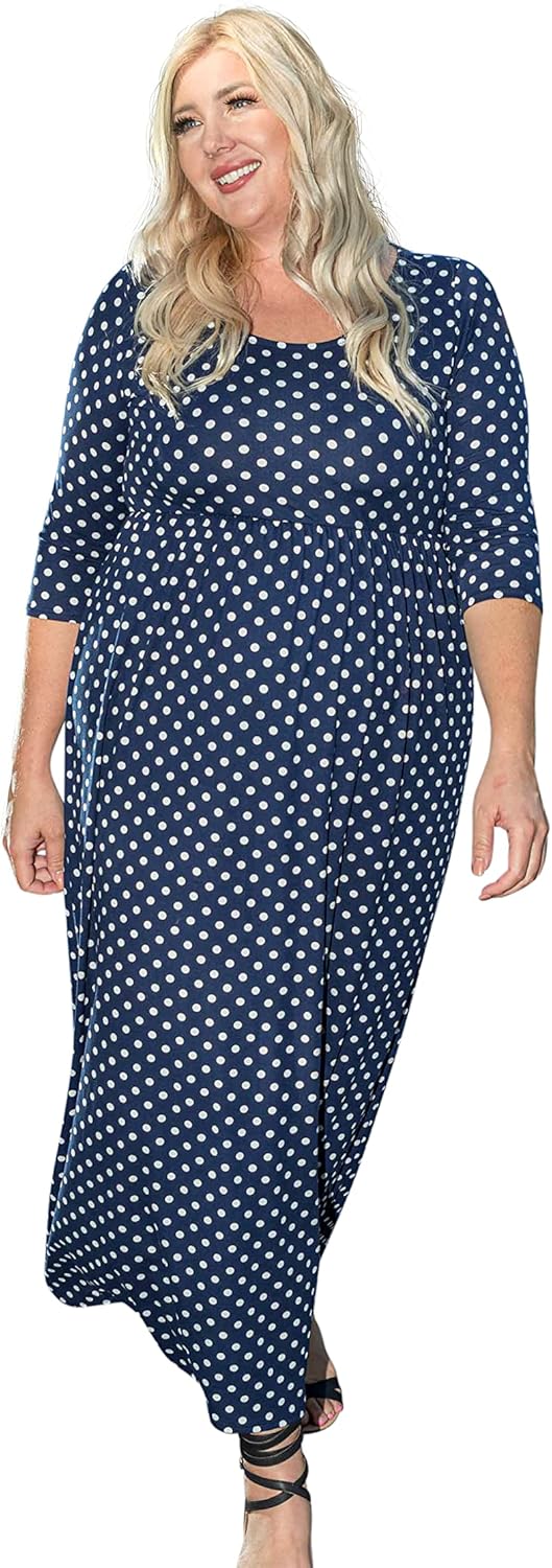 Funfash Plus Size Women Navy White Polka Dot Long Sleeves Maxi Dress Made in USA