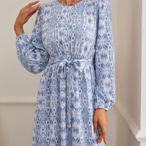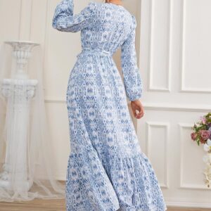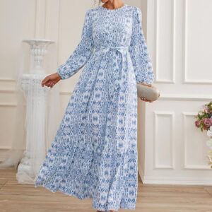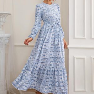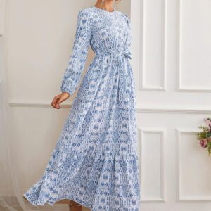 GLigeT Dresses for Women 2024 Long Sleeve Ruffle Hem Belted A Line Maxi Dress