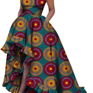 iooiooi African Dresses for Women Party Robe Plus Size Print Dashiki Dinner Dress