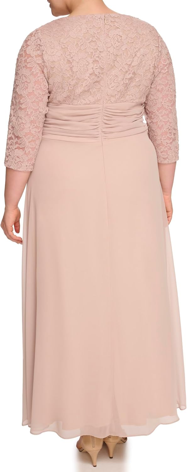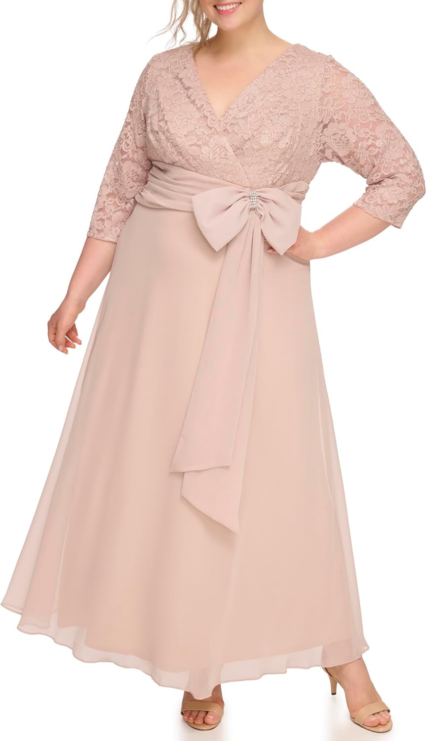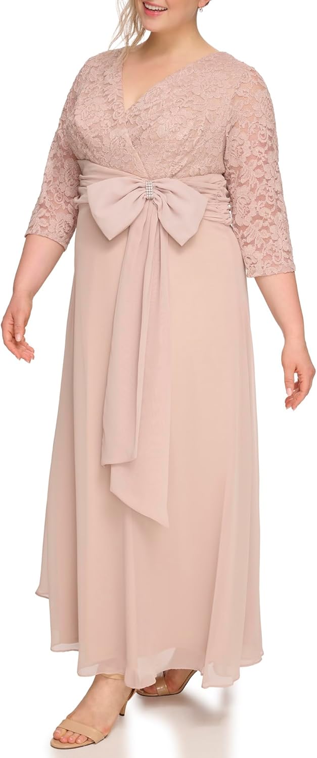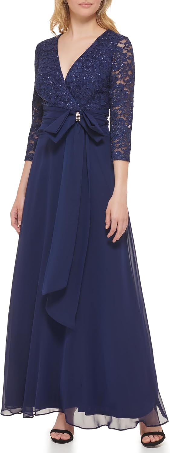 Jessica Howard Women’s Lace 3\/4 Sleeve V-Neck Maxi Gown \u2013 Special Occasion Dress