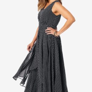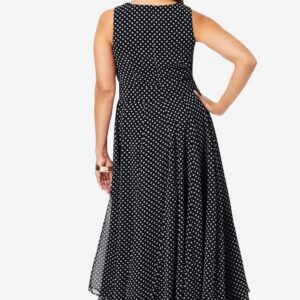 Jessica London Women’s Plus Size Petite Georgette Flyaway Maxi Dress – 12 W, Black Polka Dot