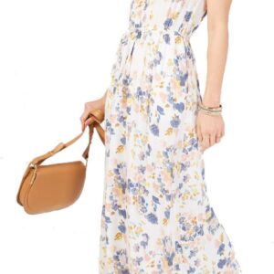 A water colored-inspired print adds a charming look to this maxi dress from Lucky Brand, styled with a flattering V-neck at both front and back and a tie at the waist. Approx. 56-1/4″ long from center back neck to hem V-neck Pullover styling Lining at skirt; tie at front Shell: rayon; lining: polyester Machine washable Imported