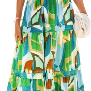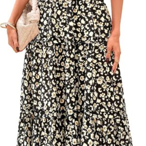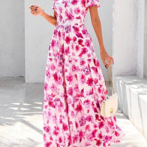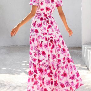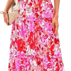 PRETTYGARDEN Women’s 2025 Summer Boho Maxi Dresses Floral Short Sleeve V Neck A Line Tiered Flowy Long Beach Vacation Dress