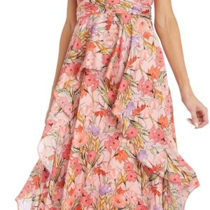 Step into effortless elegance with this maxi dress from R&M Richards, a breathtaking blend of color, movement and style. This vibrant satin maxi dress features a bold coral/lavender floral print, making it a standout choice for weddings, garden parties and chic evening events. The peplum waist detail flatters your figure, while the ruffle-accented halter neckline adds a playful yet refined touch. Designed for graceful movement, the lightweight satin fabric drapes beautifully, ensuring you feel as stunning as you look/ Whether you’re twirling on the dance floor or posing for pictures, this dress brings an air of modern romance to any occasion.