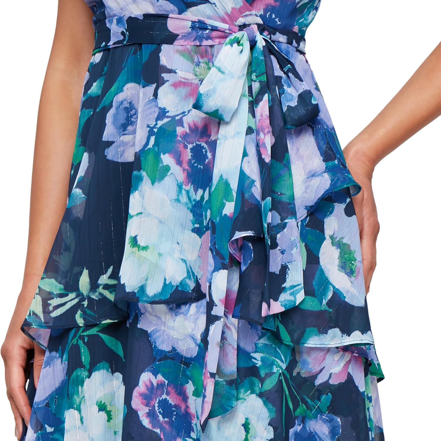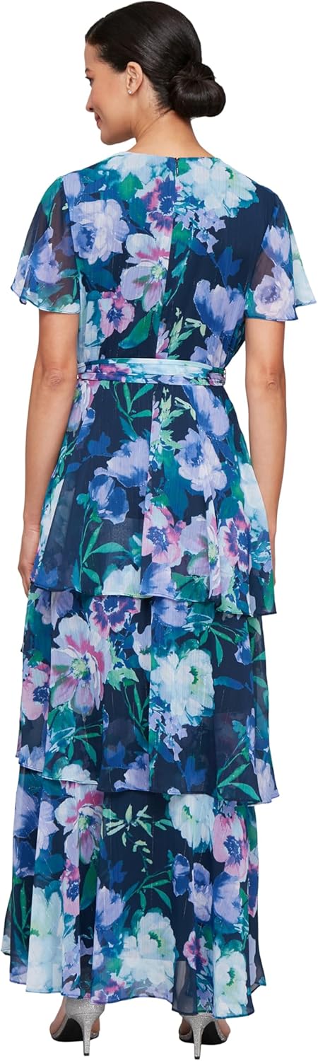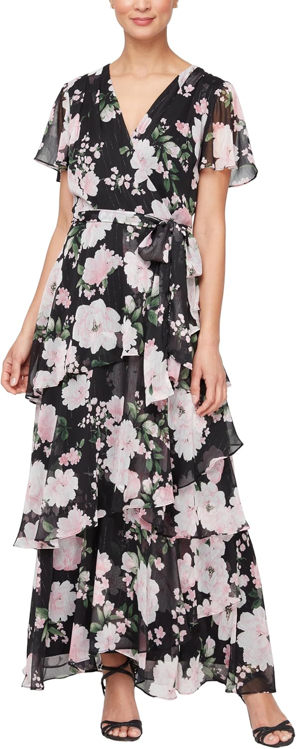 S.L. Fashions Women’s Short Sleeve Tiered Skirt Long Maxi Dress with Surplice Neckline, Wedding (Petite and Regular Sizes)