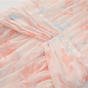 Summer Bohemian Elegant Beach Vacation Dresses Cascading Ruffle Chiffon Maxi Dress Women Casual Floral Print Flowing Long Skirt(XX-Large)