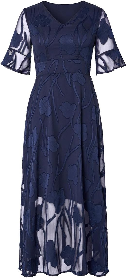 Summer Maxi Dresses for Women 2025 Casual Flutter Sleeve V Neck Cocktail Dress Smocked Elegant Ruffle A-Line Flowy Lace Dress