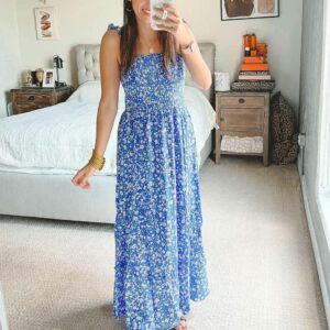 Boho Adjustable Strap Sleeveless Smocked Long Maxi Dress