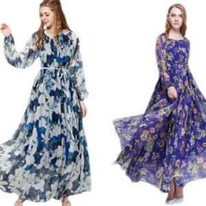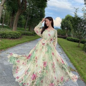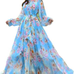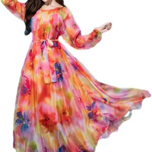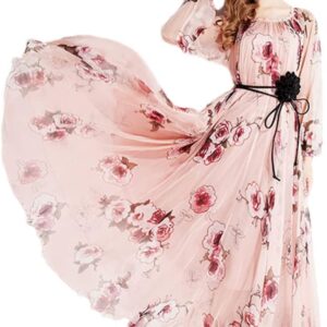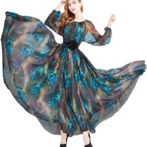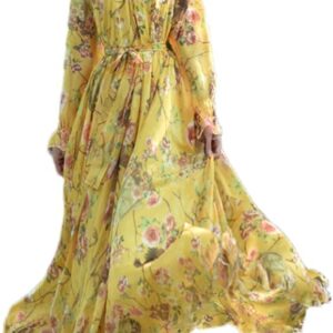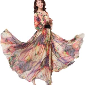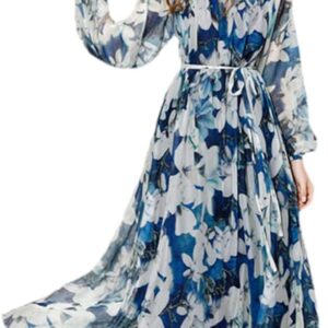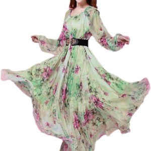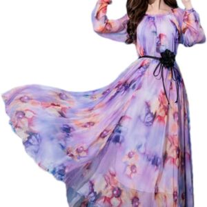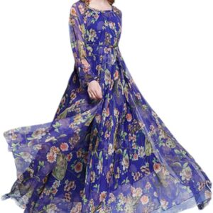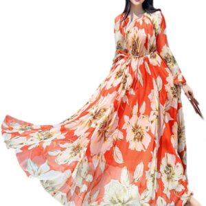 Women’s Bohemian Floral Beach Casual Loose Lightweight Chiffon Maxi Dress