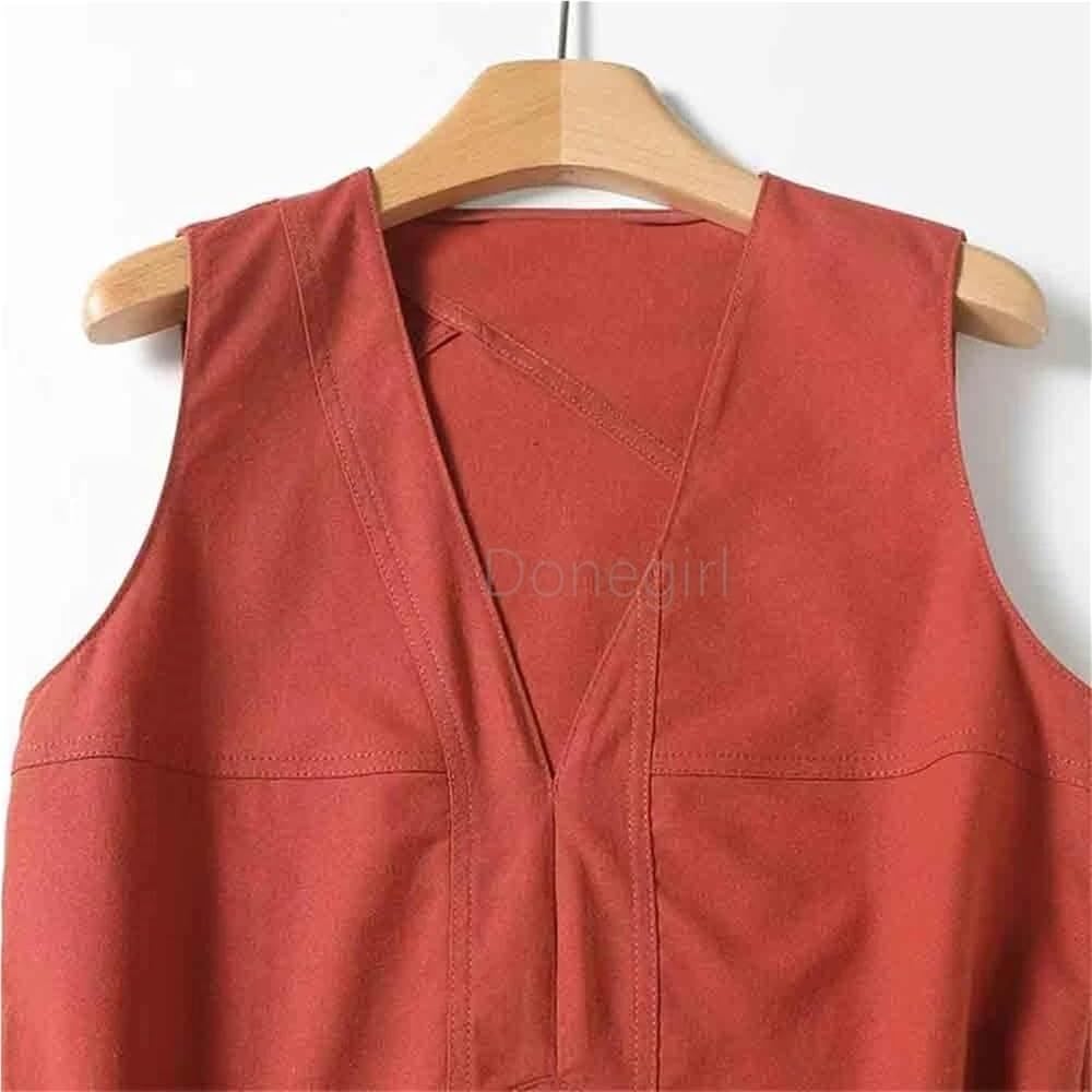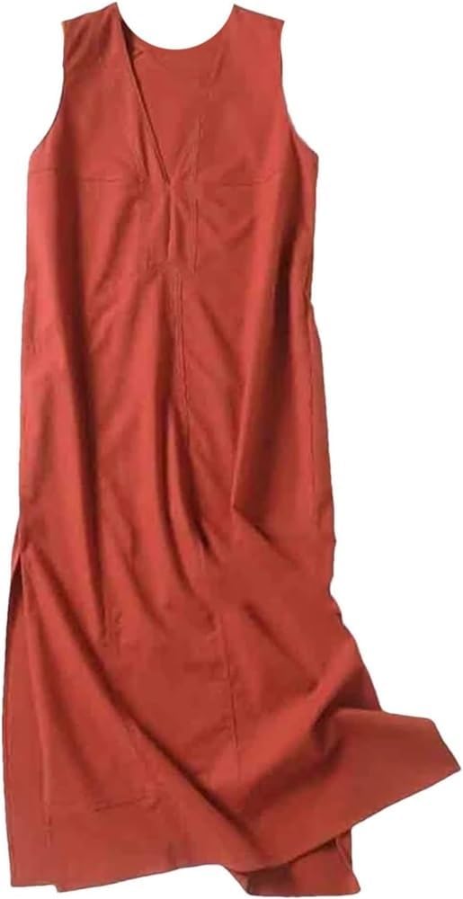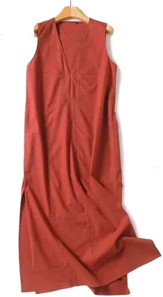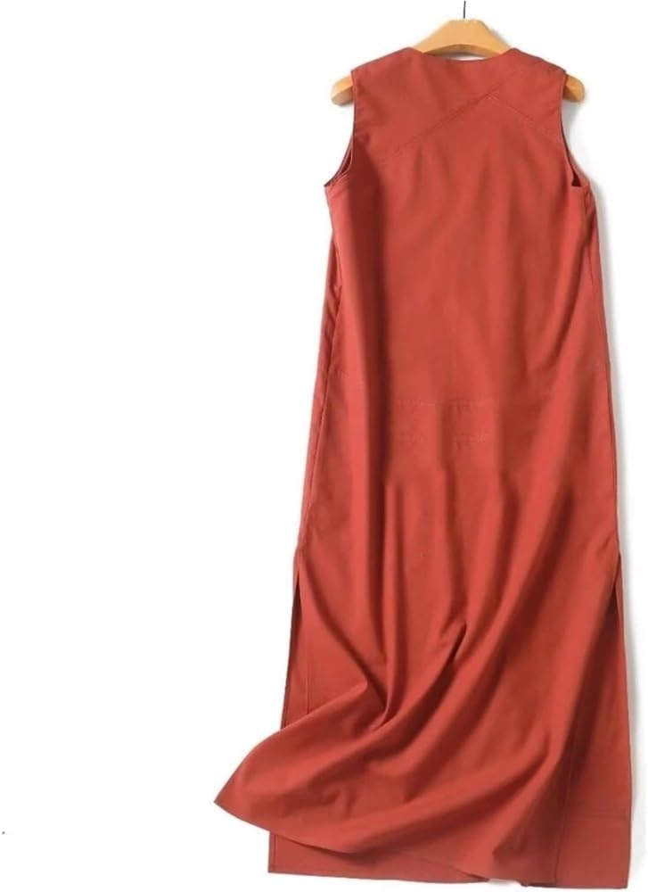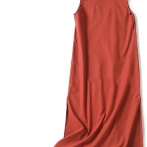 Women’s V-Neck Sleeveless Long Vest Dress Side Slit Summer Casual Maxi Dress(XX-S) Orange Red