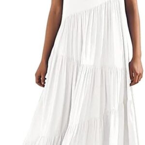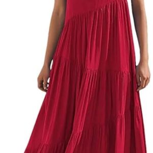 Women\u2019S Boho Loose Long Dress Short Sleeve Round Neck Asymmetric Swing Tiered Beach Maxi Casual Dresses for Travel